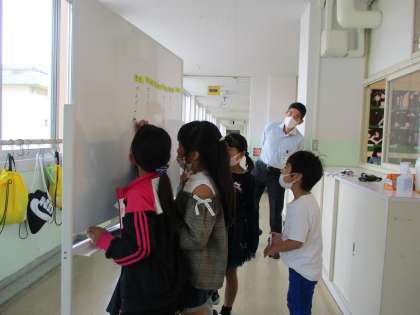 あったか言葉を探しました。思いついたものを一人一人黒板やホワイトボードに書き、いろいろなあったか言葉を知り、あったか言葉を2年1組で広げようと思う子供たちでした。