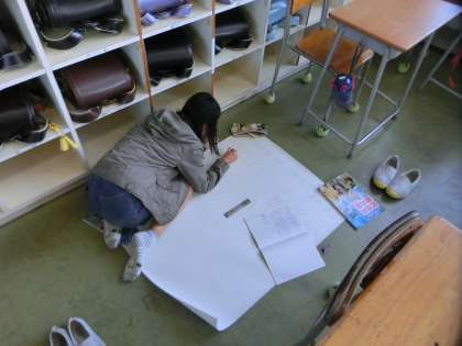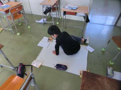 社会科で一人一人の課題に合わせて学習したことをまとめている6年生。