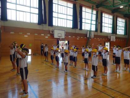 ミニ運動会へ向け、第1回の全校応援練習を行いました。