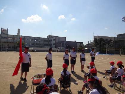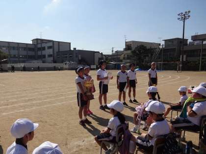 赤団、白団の解団式の様子です。支えてくれた6年生、ありがとう。