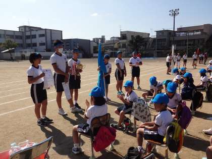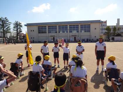 青団、黄団の解団式の様子です。6年生は、下級生をしっかりリードしました。