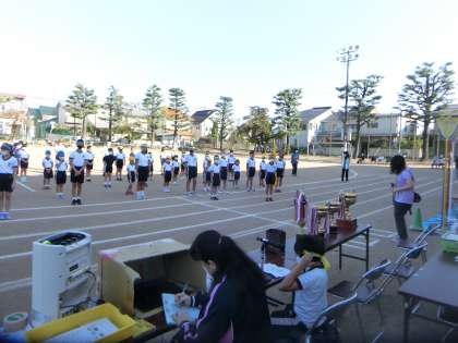 運動会で競技、係、片付けに頑張る6年生の様子です。