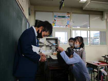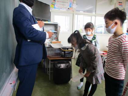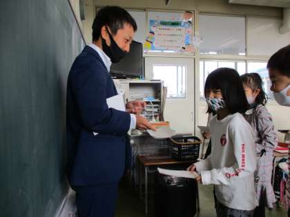 朝の会に、ミニ運動会の50m走で1位になった子供たちの表彰式をしました。他の子供たちから拍手され喜ぶ子供たちでした。