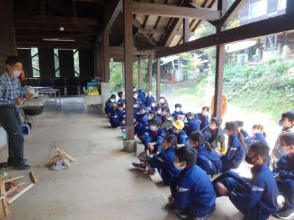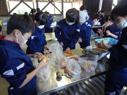 かまどを使った火の管理、炊飯、カレー作りを、分担して行いました。