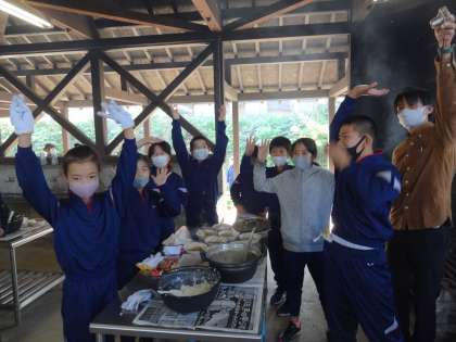 10時30分頃に調理開始の合図をしてから、どの班も約1時間という速さで、11時30分頃、ご飯とカレー作りを終えました。