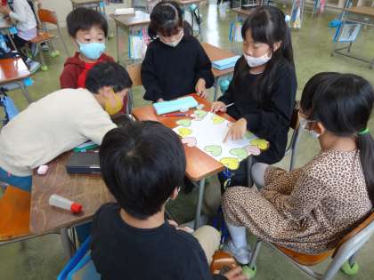先日の町探検でお世話になった方々へ、感謝の気持ちを伝えるために「ありがとうカード」を作りました。