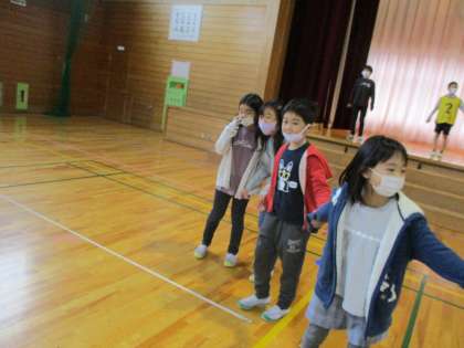 なかよし班で「猛獣狩りに行こうよ」のゲームをしました。他学年と関わり、友好を深めました。