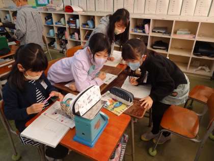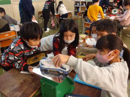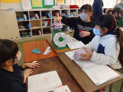 台ばかりの仕組みと、目盛りの読み方を学習しました。それぞれの筆箱の重さを量り、グループ内で比べました。