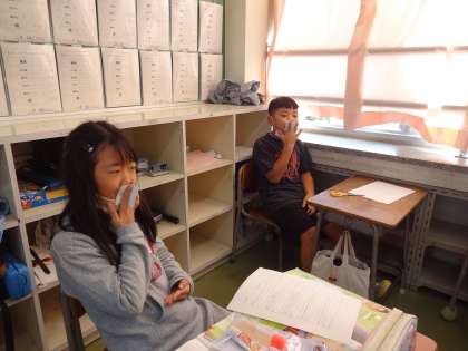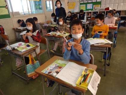 一人一人が紙笛を作って、鳴らしてみました。