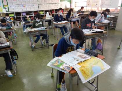 明治時代の初め頃に書かれた神通川の図と、現在の神通川の写真を比べました。