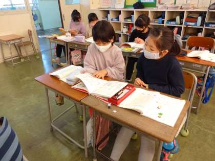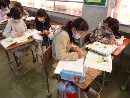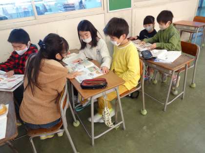 その材料を選ぶために、先生が、学校の図書室や市立図書館から借りてきた本を回し読みしました。
