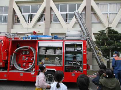 「はしご車ではないのに、どうしてはしごがあるのですか?」と、突然の質問にも快く答えてくださいました。さあ、この質問の答えを覚えているかな。