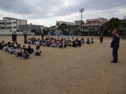 午前10時10分から自衛消防訓練(避難訓練)を行いました。今日は、休み時間の火災発生の想定で、訓練しました。