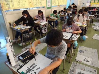 今年度の書き初め大会の文字は、「水清き里」です。