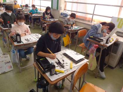文字の特徴をつかんで筆を運ぶことを課題として、取り組みました。