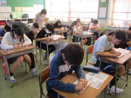 総合的な学習の時間に、アイサポートkiraraの方をお招きして、点字の打ち方体験を行いました。
