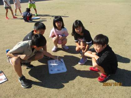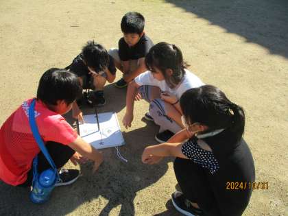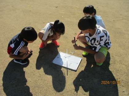 日光と影について観察しています。観察後、影おくりや影踏みをして遊びました。