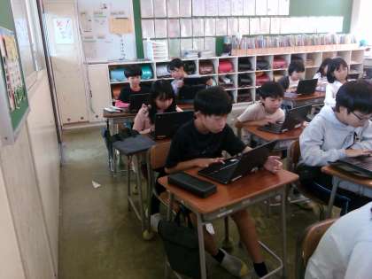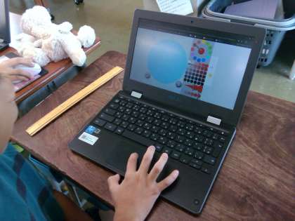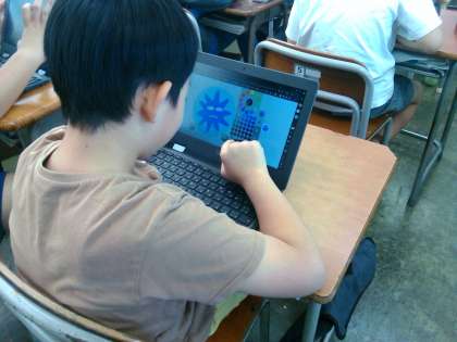 ビスケットのアプリを使って、プログラミングの学習をしました。絵を画面に描いて動かし方を自由に決めて自分だけの作品を作り上げています。