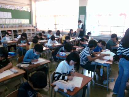 「とめ」「はね」「はらい」に気をつけて、丁寧になぞり、なぞった字を丁寧に書き写しています。利き手の小指が黒くなるほど、真剣に書きました。