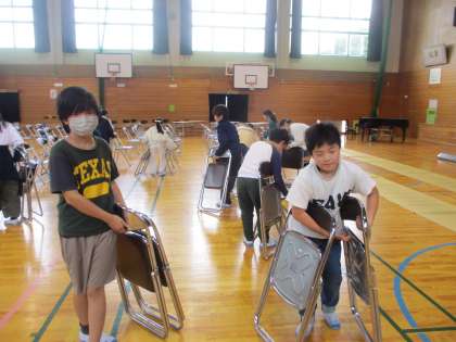 学習発表会後は、6年生と一緒に体育館の片付けを手伝いました。