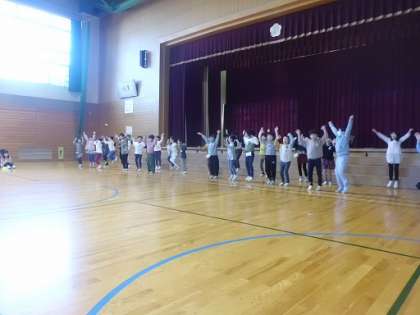 今日のさわやか集会は、1年生の発表です。ダンス係が提案したダンスを、1年生みんなで披露しました。上学年みんなの手拍子や感想をたくさんもらって、1年生はとてもうれしかったです。