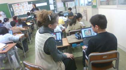 ペアが喜ぶピザをつくります。好きな具材を聞き合い、クロームブックでピザを完成させます。