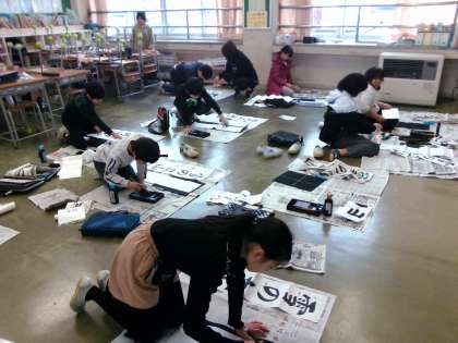 12/13(金) 4年生 書き初め練習