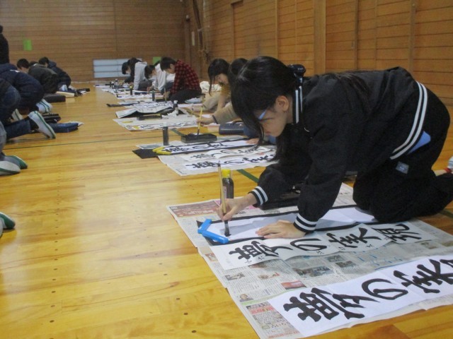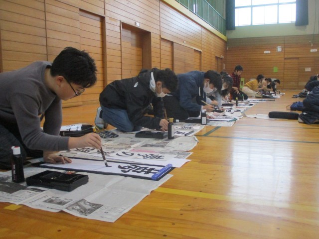 新しい年を迎え、新しい学期がスタートしました。冬休み明けでしたが、子供たちは元気そうな顔をしており、うれしい気持ちになりました。始業式の後、今年度は体育館でも書き初め大会でした。3~6年生が集中した雰囲気の中で、自分の字とじっくりと向き合っていました。