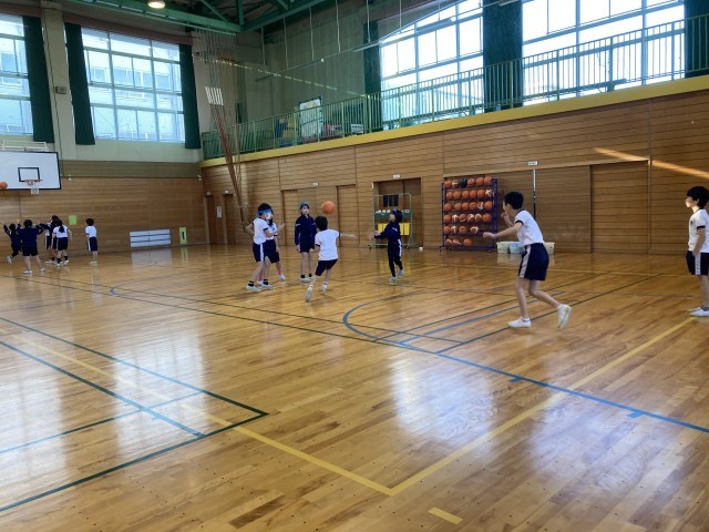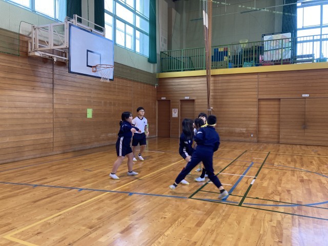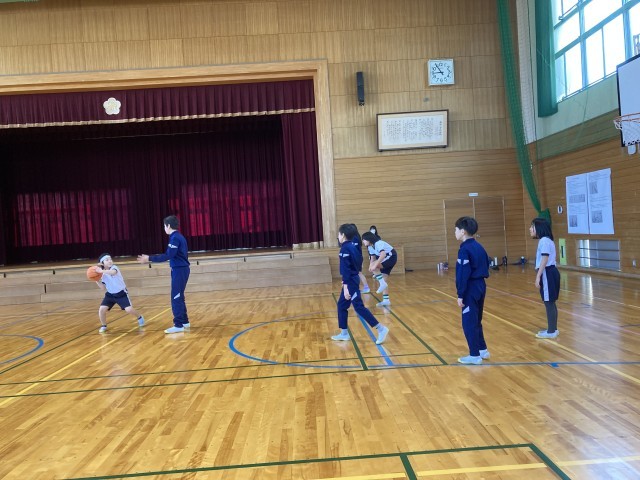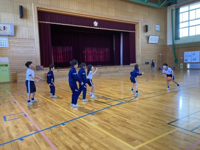 各団オフェンスとディフェンスに分かれて、攻撃や守り方などの練習をしました。パスが通るようにマークを見ながら動くことができています。