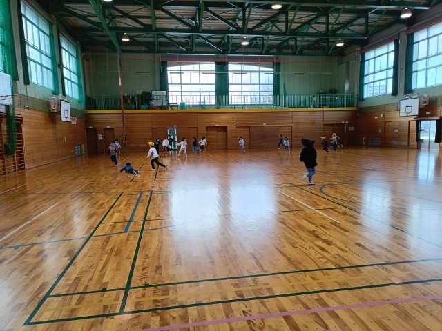 遊び係が企画した「氷鬼」を体育館で行いました。