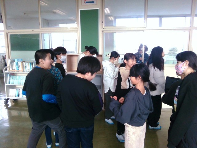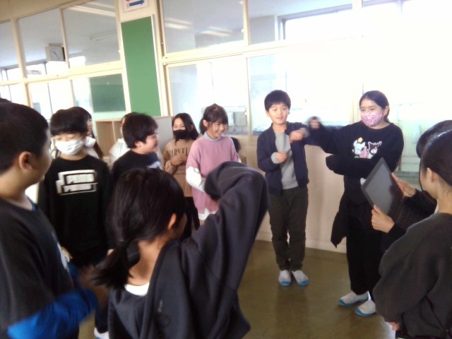 5年生のイベントは、「ジェスチャー伝言ゲーム」でした。伝言ゲームをジェスチャーで行うというシンプルな内容のようにみえますが、意外と捉え方が異なっていて最後にはぜんぜん違う答えが出てくることがあり、みんな大笑いでした。正解したときは、みんな大盛りあがり。気持ちが通じ合ったような場面が見られました。