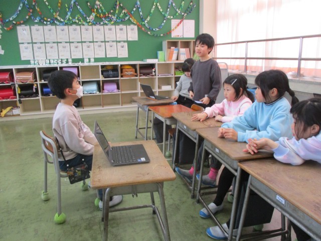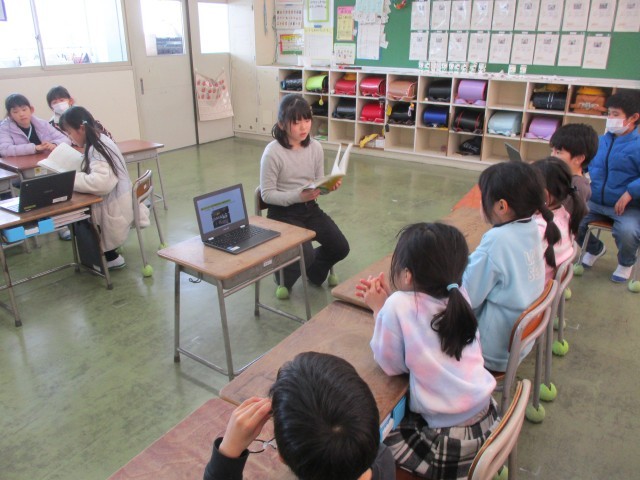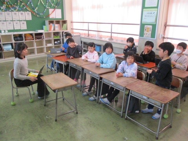 3年生が総合の学習でまとめた富山市の自慢を、2年生に発表してくれました。