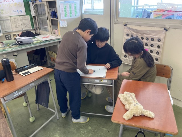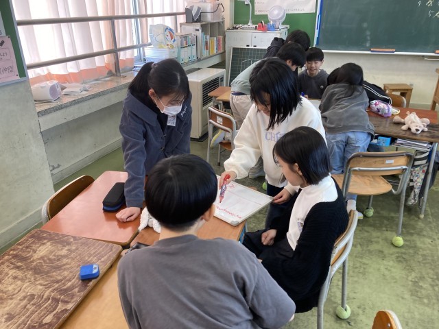 学級活動で一人一人の仲を深めるための活動をしました。1年間にあったことがお題になり、それに沿って絵を描き、絵をヒントにお題を当てます。1年間を振り返るきっかけになりました。