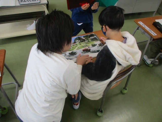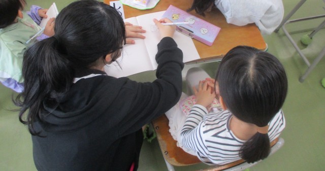 一緒に本を読んだり、イラストを描いたりするなど、得意なことを生かして活動を発展させようとする姿が見られます。