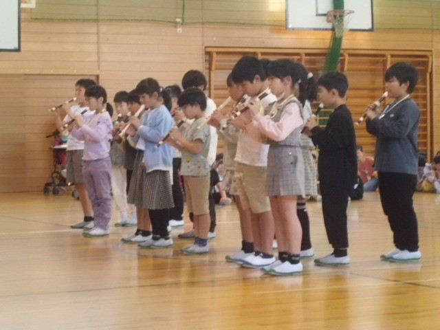 1年生にリコーダーの演奏を聴いてもらってクイズを出しました。