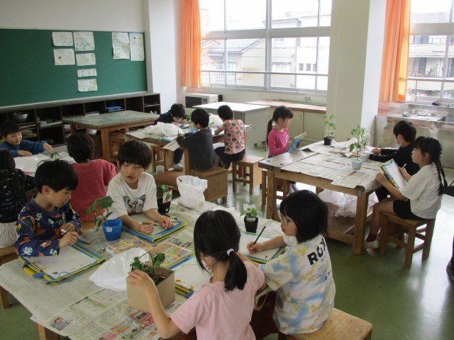 一人一人がこれから大切に育てる野菜のなえを観察しました。