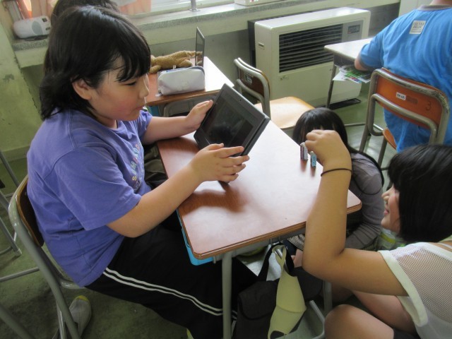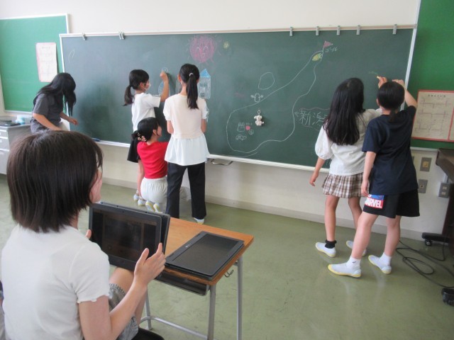 図画工作科では、クロムブックを使ってコマ撮りアニメーションを制作しました。身近なものが、まるで生きているかのように動く様子を楽しんでいました。