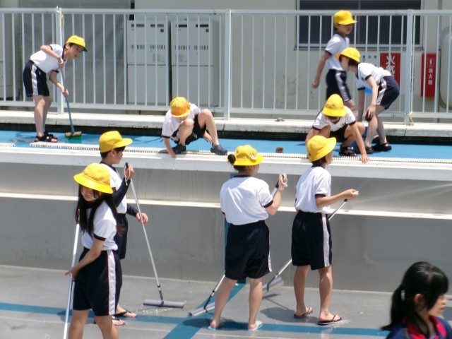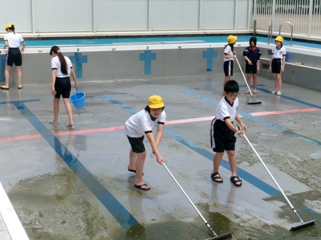 5、6年生でプール清掃をしました。みんなが気持ちよくプールを使うことができるように、隅々までぴかぴかにしてくれました。ありがとう。プール開きは12日の予定です。