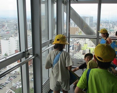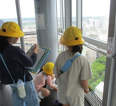 富山市役所に行ってきました。展望塔から富山市の様子を見たり、市役所の様子や利用している人を調べたりしました。