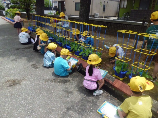 「つるが伸びたよ」「葉っぱが大きくなった」「触るとざらざらしている」など、様々なつぶやきが聞こえてきました。