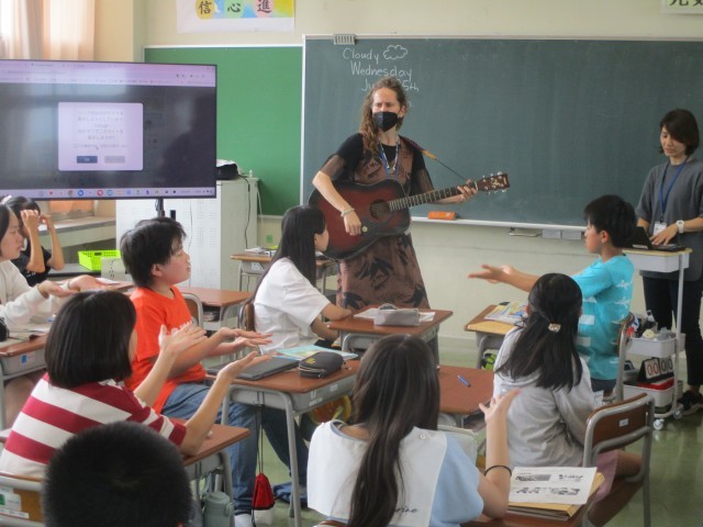 英語の歌に合わせて、日常会話で使う語句を確認しています。楽しく学習しています。