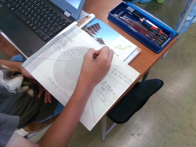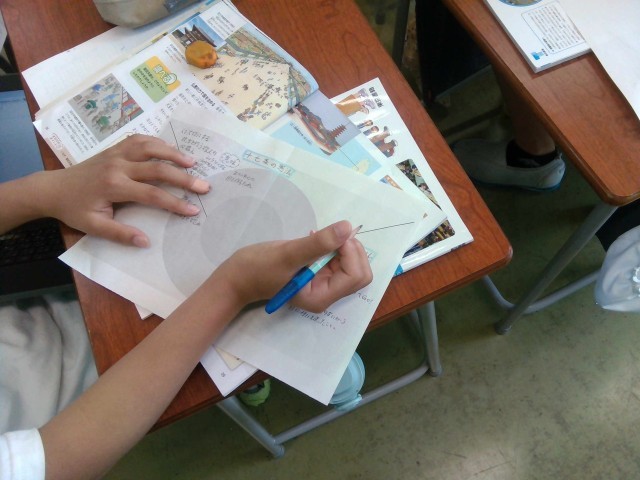 社会科では、飛鳥時代の学習をしています。聖徳太子が行った政治や目指した国づくりについて調べている様子です。