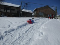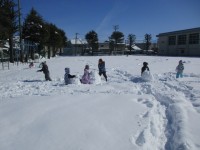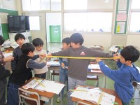 体育では、ボールを使った運動をしています。今日は、片手でまっすぐ投げる練習をし...