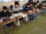 2限の2年生に続き、3限は4年生の子供たちに、中国出身の富山国際交流員が、中国...
