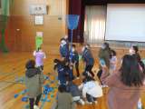 5年生の卒業プロジェクトの企画です。サンサンタイムに、3年生と6年生が「大縄跳...