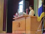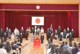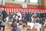 修了式を終えようとしたとき、5年生が登場! 今年度ご退職される校長先生へのサ...
