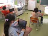 教科書に載っているQRコードをクロームブックで読み取り、国語と算数の復習をしま...