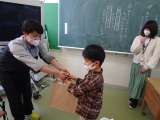 1年生の保護者の方々が、真島先生と長越先生の結婚をお祝いするために、帰りの会に...