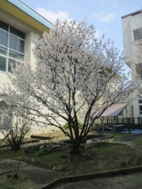 中庭の桜が今、満開です。3年生の子供達のようです。4年生となる子供達の学校生活が...