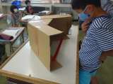 実物投影機を使って、クラス全員に「分数÷整数」の計算の仕組みを図で説明しました...